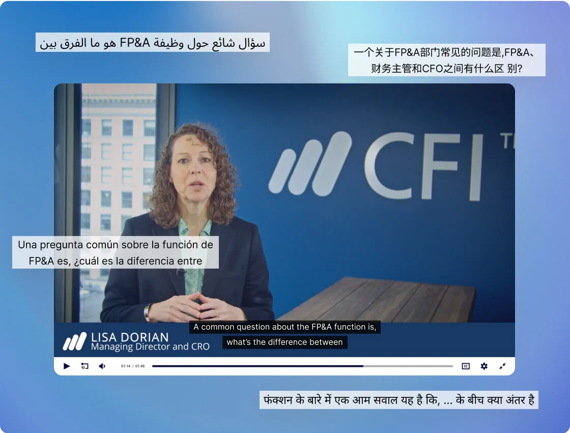 Learn in your native language with AI translated subtitles in 20+ languages. *Available on FMVA courses.